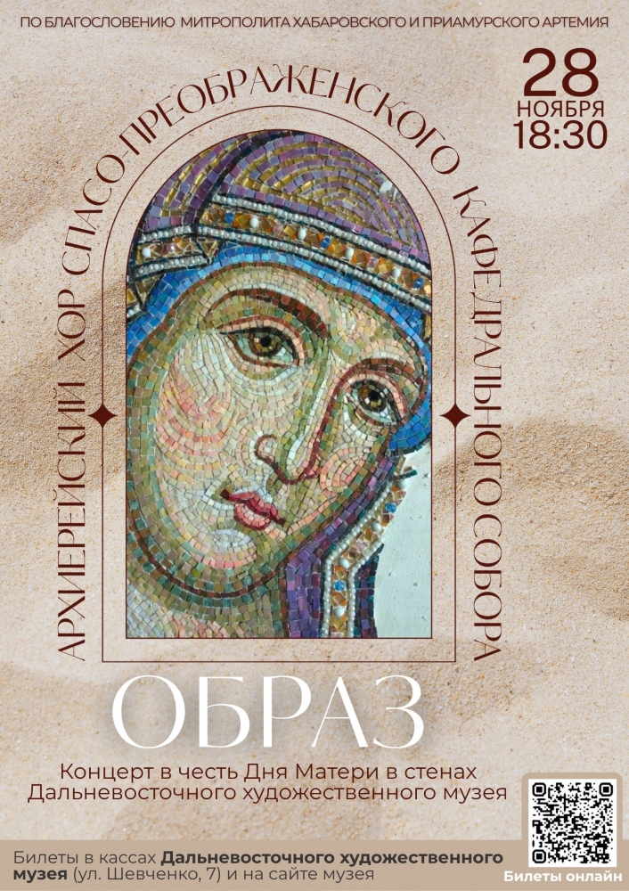 28 ноября в 18:30 в Дальневосточном художественном музее пройдет концерт Архиерейского хора Спасо-Преображенского кафедрального собора «Образ», приуроченный ко Дню Матери.